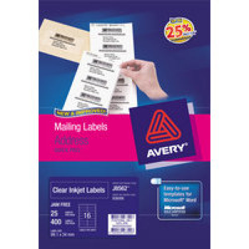 Avery Clear Mini Label- Ink jet – J8551 DescriptionOnly use labels specially designed for use in inkjet printers.